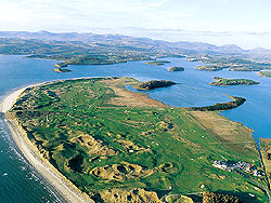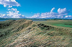 Lying in the bosom of Donegal Bay, this superb links occupies an elegant peninsula which is backed by the magnificent Blue Stack Mountains. "Hauntingly beautiful and an excellent test of golf," is how Peter Dobereiner of the English Observer described it. The course is presented in two loops of nine where the fairways wind their way by the Atlantic dunes and the sage green grasses of the bay. The course suits big hitters of the ball as the ever- present ocean breezes ensure that it plays long and challenging most of the time. The par 3 fifth is called "The Valley of Tears", and has proved just that for the golfer short on skill and nerve.